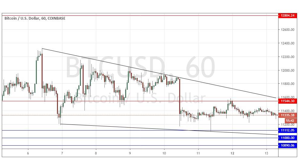 Go long at a bullish price action reversal on the H1 time frame following the next touch of $11,112, $11,000 or $10,890.