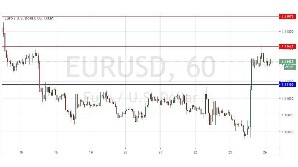 - Long entry following a bullish price action reversalon the H1 time frame immediately upon the next touch of 1.1117.