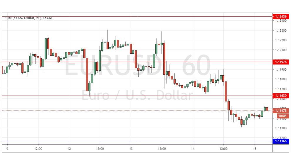 I wrote yesterday that although the price was still within its range from 1.1163 to 1.1244, the price was looking more bearish after the U.S. Dollar strengthened upon an announcement that the implementation of tariffs on Chinese imports would be delayed. I was more convinced that we would see a breakdown below 1.1163 and that this level was very likely to be the day’s pivotal point.