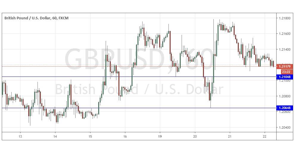 The support at 1.2105 may be an interesting level. If we get a firm bullish bounce there, a long trade back up to the area of the recent highs at about 1.2175 becomes a possibility.