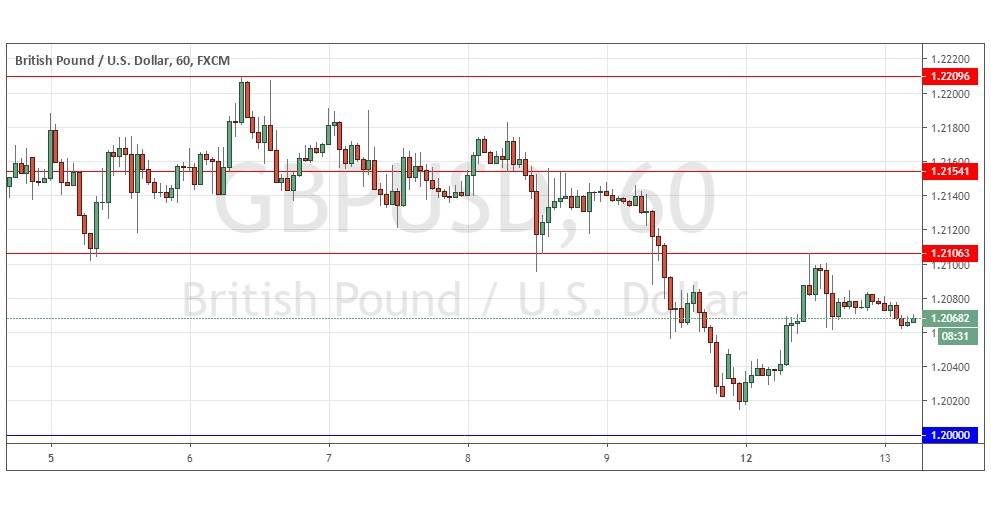 I was correct to be cautious, as buyers did step in when the price got close to the big round number at 1.2000. However, the resistance close to 1.2100 held and the price sold off from there again. This suggests to me that we are likely to see another move down towards 1.2000 today. The technical picture suggests this, but we are getting major news releases over the coming hours for both currencies in this Forex pair, which could push the price anywhere.