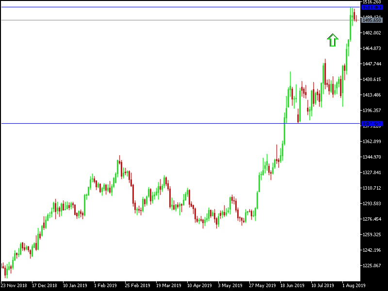 With the beginning of this week’s trading, gold prices are undergoing a downward correction to the 1492 support level, amid profit-taking sellings, after the recent record gains of the yellow metal pushing it to the 1510 resistance level, the highest price for gold in six years. Gold traders are awaiting the price to reach new buying areas, as the strengths of gold continue to increase. Global trade and geopolitical tensions are on the rise and the yellow metal is one of the most important safe havens for investors to hedge against these risks. Investors are following developments in the global trade war, which may naturally slow down global economic growth.