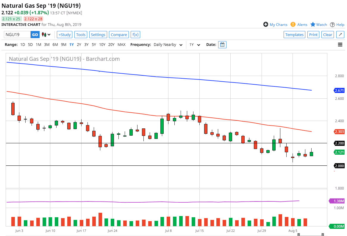 Natural gas markets rally during the trading session on Thursday as we continue to reach towards the $2.15 level but also continue to see quite a bit of trouble. At this point, I believe that every nickel or so you should be looking to sell natural gas, as we have seen so much in the way of negativity for quite some time and therefore it’s likely that every time we try to rebound a bit, people will be looking to short this market.