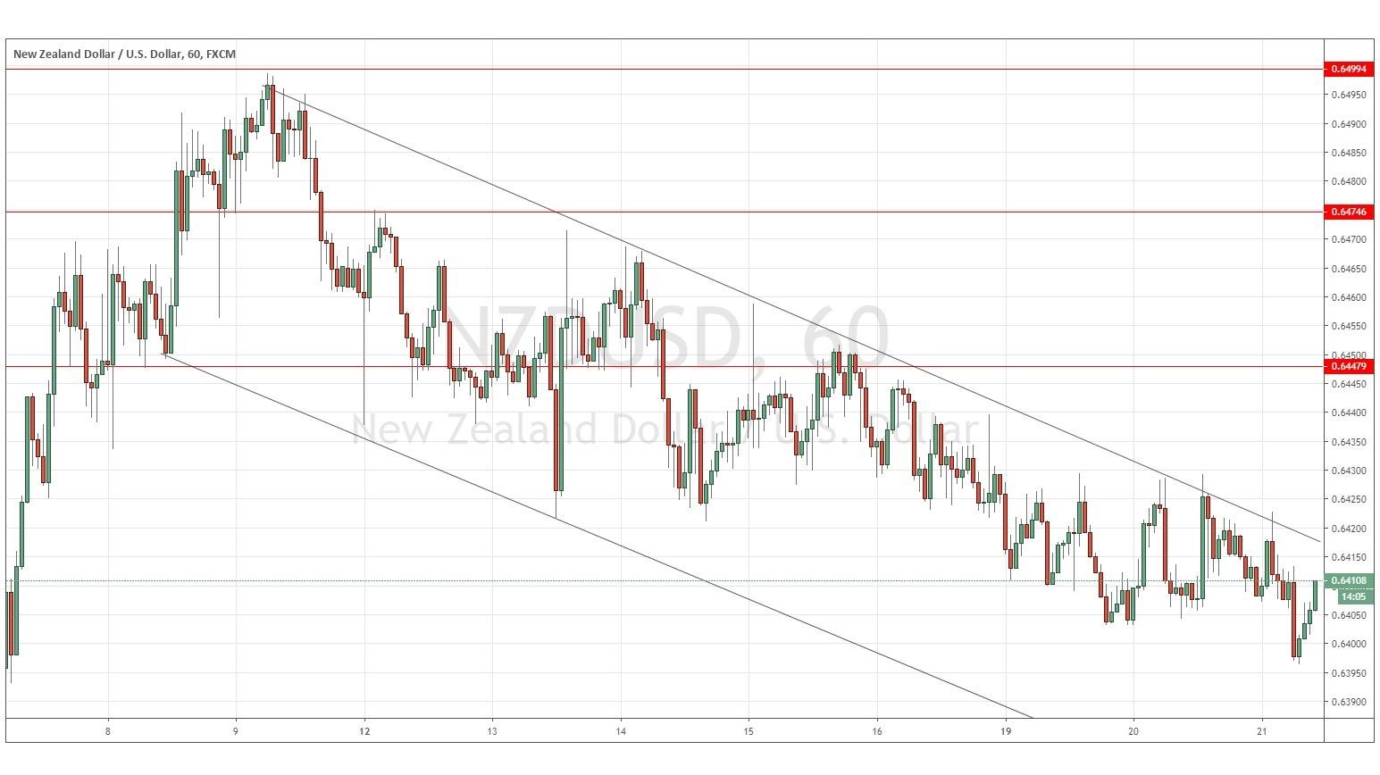 I wrote yesterday that the price was likely to continue moving down very slowly from a descending trend line, albeit on very low volatility. This made me generally bearish, but I wanted to see the price break below 0.6400 during the New York session before going short, and this never happened.