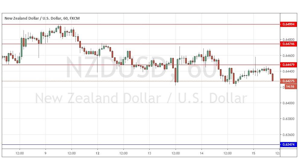 I would again take a bearish bias on this currency pair if the price is below 0.6420 and falling with reasonably good momentum at 9am New York time.NZDUSDThere is nothing of high importance due today concerning the NZD. Regarding the USD, there will be releases of Core Retail Sales, Retail Sales, and the Philly Fed Manufacturing Index at 1:30pm.
