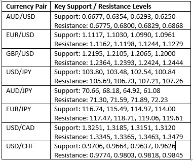 We teach that trades should be entered and exited at or very close to key support and resistance levels. There are certain key support and resistance levels that should be watched on the more popular currency pairs this week, which might result in either reversals or breakouts: