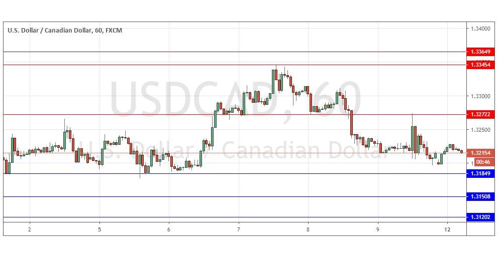 We got no such bounces at any of the support level. The price continued to fall against my expectations without finding any support and is now almost back at the key level at 1.3185 which has held as support for a while. The bullish trend is barely present, and this trend looks extremely weak, so I really have no directional bias. The only opportunity I see here which may set up is due to the reliability of the support level at 1.3185, so a solid bullish bounce at a touch of this level could provide a long trade entry and I would take a bullish bias upon this scenario playing out.USDCADThere is nothing of high importance due today concerning either the CAD or the USD.