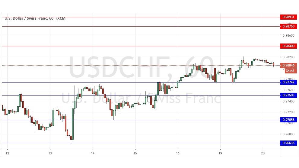 Yesterday’s signals produced a profitable long trade from the bullish inside candlestick which rejected the support level at 0.9775. It would probably be wise to close this trade fully for profit as the price action suggests we may not see higher prices soon.