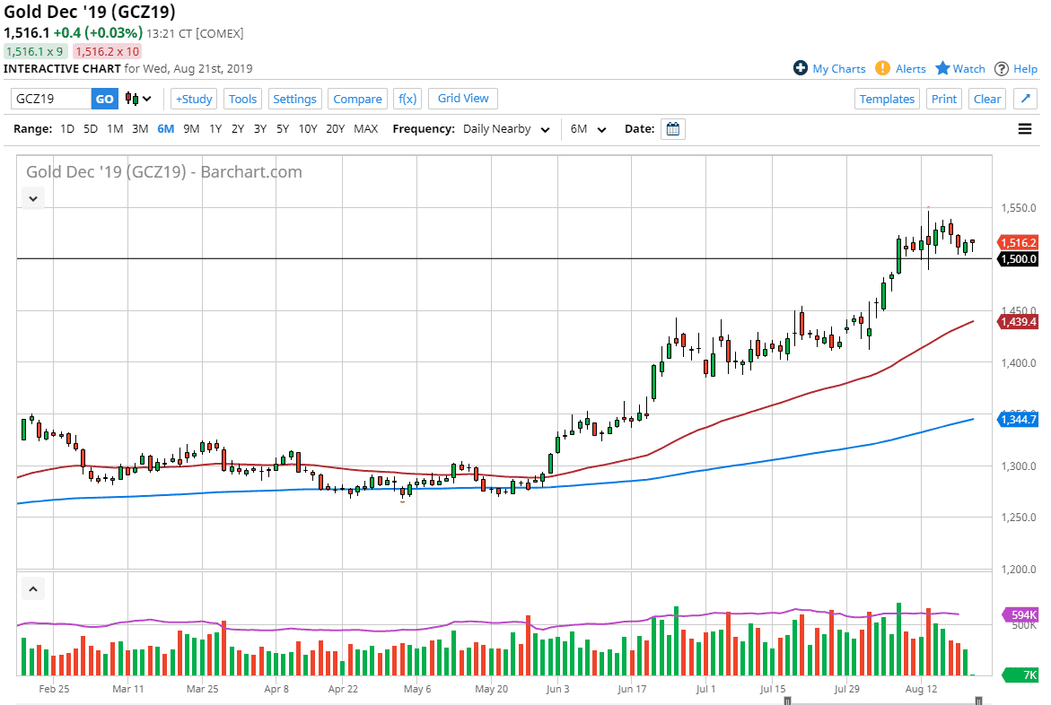 XAU/USD Forecast : Gold Continues to Find Support in Round Numbers - 22 August 2019