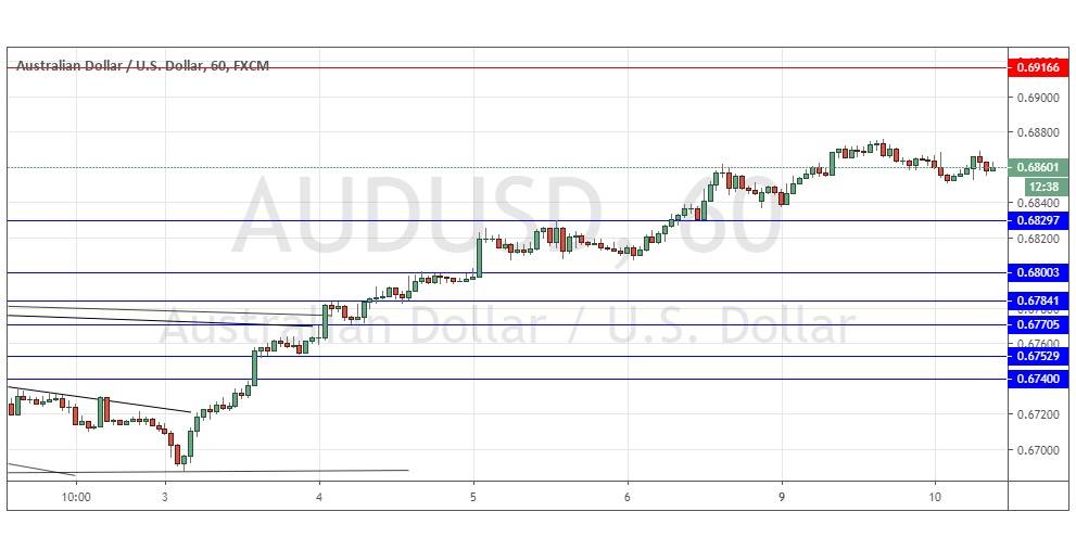 This was a good call, as the price has failed to rise higher over recent hours, so it seems that we are sue for at least a bearish pullback within the strongly bullish move of recent days. The next key thing to watch out for, I think, will be whether the support at 0.6830 or at worst 0.6800 hold up. If so, the bullish move will be likely to continue, so I would still take a bullish bias if get a solid bullish bounce at either of those levels after a deeper bearish retracement.