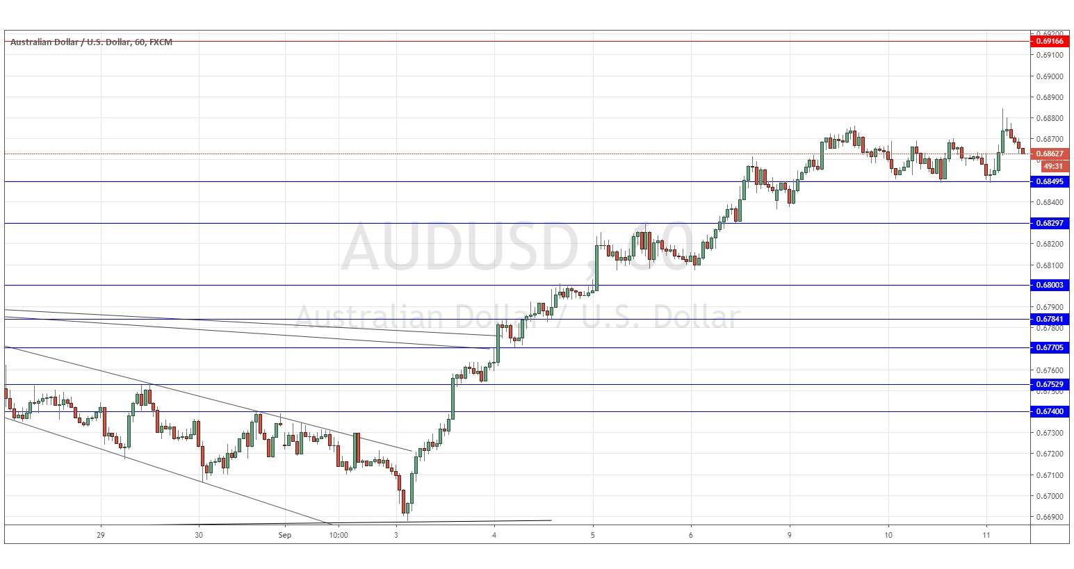 I wrote yesterday a bearish pullback was due. I saw the next key thing to watch out for as being whether the support at 0.6830 or at worst 0.6800 would hold up. If so, the bullish move would be likely to continue. This was a correct call but not actionable as the price never revisited either of the nearby key support levels which I identified at 0.6830 and 0.6800.