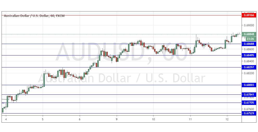I wrote yesterday that the technical picture had become significantly more bullish, so I was ready to take a bullish bias if the price broke the recent highs after the New York session got underway. This did not happen, so no bullish bias. However, the price has continued to advance and print new higher support at 0.6868 which was a key level before yesterday, so it has significance. This is another bullish sign, and the price seems to be really holding up above the pivotal 0.6850 area, so I will take a bullish bias today above 0.6890 until 0.6917 is reached.