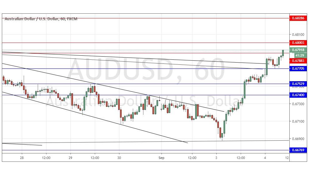 I wrote yesterday that although we had a break above the upper trend line of the bearish channel plus a long to medium-term triple bottom at the 0.6690 area, I still saw a lot of resistance within the 75 pips above the current price, and it was hard to see much of this area being broken to the upside. For these reasons, I was still looking for short trades below 0.6800.