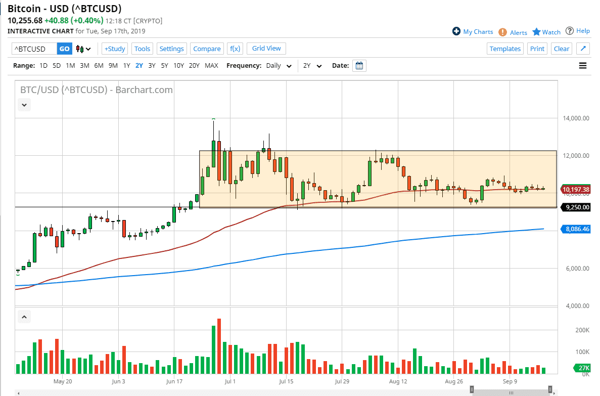 Bitcoin markets have done very little over the last several days, simply following the 50 day EMA. This is a very important technical indicator for this market as the 50 day EMA does seem to be respected over the longer-term. The fact that we are walking along it tells me that the market is simply waiting for something. That something of course would be the Federal Reserve announcement tomorrow, because obviously it will have a crucial effect on what happens next with the US dollar. Remember, Bitcoin is a way to get away from fiat currencies, especially the US dollar.