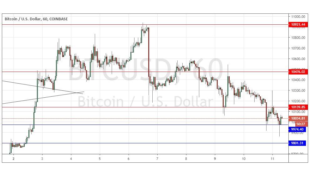 Yesterday’s signals produced a losing long trade from the bullish rejection of the support level identified at $9,982.