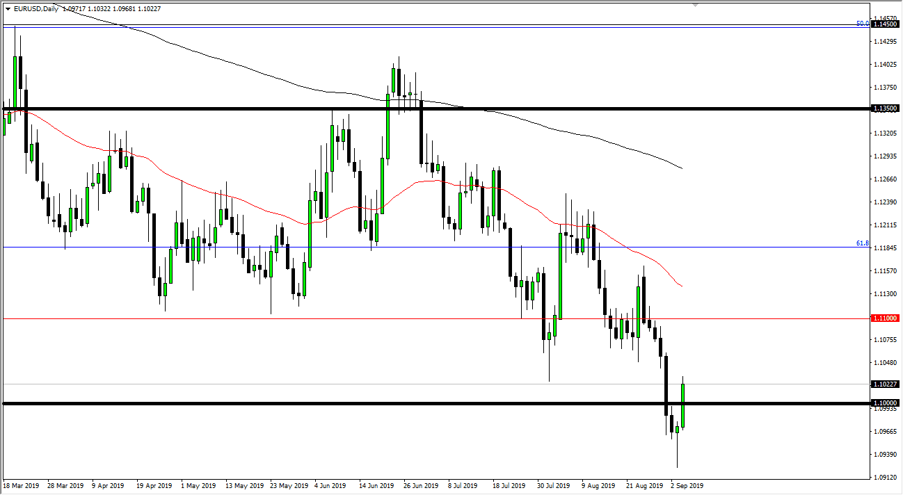 The Euro has rallied during the trading session on Wednesday to break back above the 1.10 level. This has been rather impressive move by the Euro in general but it’s obvious to me that there is significant resistance above. With that in mind, I think that what we are about to see is a move towards the 1.1050 level, with a bit of a “ceiling at the 1.11 handle. With the jobs number coming out on Friday it’s hard to imagine a sudden jump into the Euro, especially considering everything that’s going wrong right now in the European Union.
