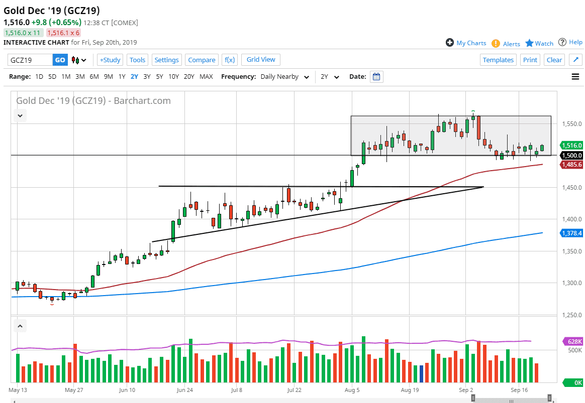 Gold markets rallied during the trading session on Friday again, as the $1500 level continues offer a significant amount of support. However, there is a lot of noise in this general vicinity so I would not be overly surprised to see this market pull back from here. Looking at this market, the $1490 level underneath would be massive support and essentially the bottom of the “support zone” that features a $1500 psychologically important figure.