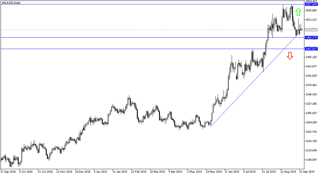 There is no doubt that the increased investors’ risk appetite is hurting the price of gold , which has now happened with the price falling to $1495 an ounce, and failed at the beginning of this week's trading, to penetrate the $1512 height, recorded after the recent tensions in the Middle East. At the same time, it should be noted that the yellow metal will be on an important date this week with the announcement of monetary policy decisions of a number of central banks, most notably the Federal Reserve, the Bank of England, the Bank of Japan and the Swiss central bank. Last week, the gold price jumped to the $1,524 resistance after the European Central Bank announced massive stimulus plans to revive the Eurozone economy. The shift in policy from other global central banks this week towards policy easing could support the return of gold's gains. The most notable may be the US central bank's cut of the US interest rate by a quarter point to counter the risks to the country's longest economic growth period.