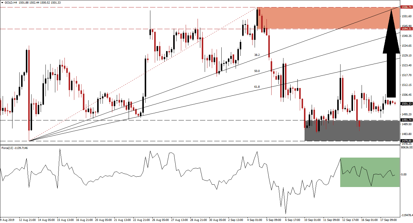 The breakout-reversal-breakout in gold in-and-out of its support zone, located between 1,479.80 and 1,491.74 which is marked by the grey rectangle, resulted in a series of higher lows which represents a strong bullish development. A recovery in the Force Index above 0 with gold maintaining its position above 1,500 is expected to push this metal back above its 61.8 Fibonacci Retracement Fan Resistance Level. Since this is an ascending resistance level, it would also result in a higher high above its previous intra-day high of 1,523.92 from where bullish pressure is likely to follow. The intra-day low of 1,493.23, located just above its support zone, is a key level to watch for a sustained uptrend.