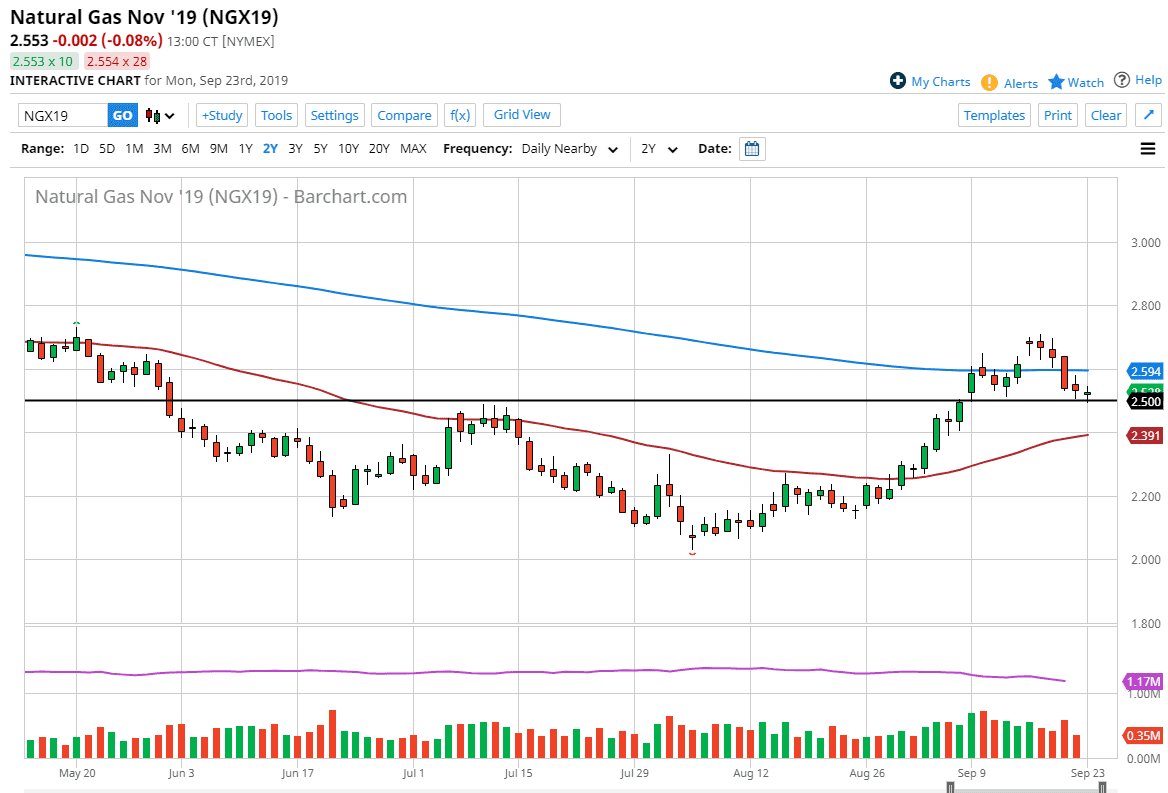 Natural gas markets fell initially during trading on Monday to kick off the week but ended up finding a bit of support at the $2.50 level which of course is a large, round, psychologically significant figure. With that being the case, it makes sense that there would be a certain amount of buyers in that general vicinity. With that in mind I believe that the market is going to continue the overall run to the upside.