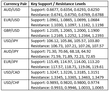 We teach that trades should be entered and exited at or very close to key support and resistance levels. There are certain key support and resistance levels that should be watched on the more popular currency pairs this week, which might result in either reversals or breakouts: