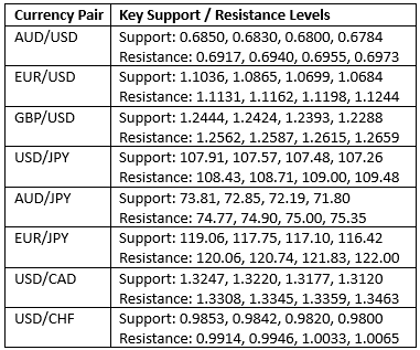 We teach that trades should be entered and exited at or very close to key support and resistance levels. There are certain key support and resistance levels that should be watched on the more popular currency pairs this week, which might result in either reversals or breakouts: