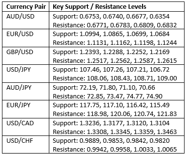 Key Support/Resistance Levels for Popular Pairs