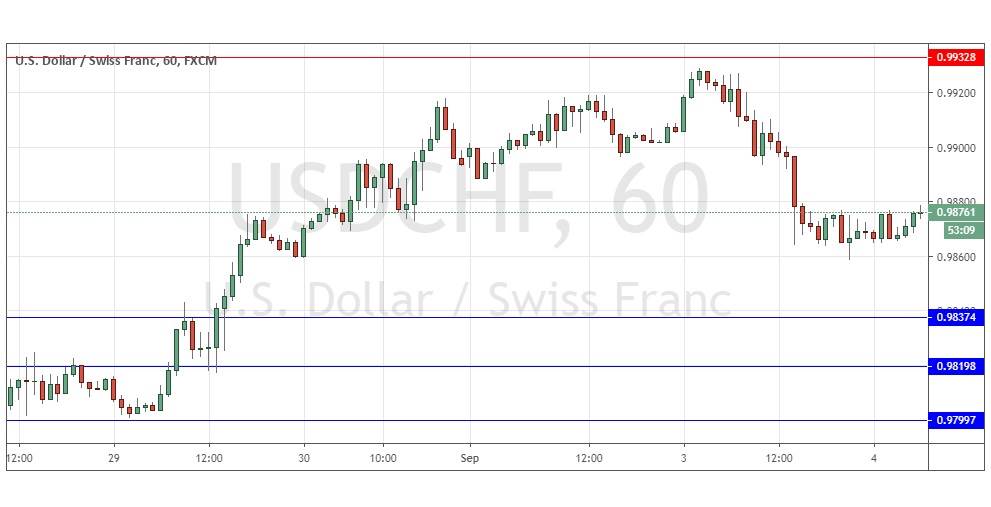 Go long following a bullish price action reversal upon the next touch of 0.9837.