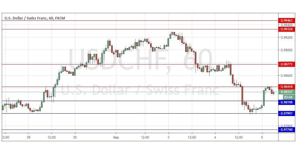 Yesterday’s signals were not triggered as there was no bullish price action when 0.9837 was reached.