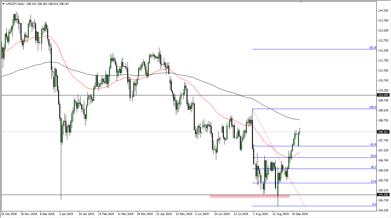 The US dollar went back and forth during the trading session on Tuesday, as we are hanging about the ¥108 level. That’s an area that should continue to be interesting, because we have filled the gap from the opening of the week, and now we are just sitting there waiting to see what happens next, as the Federal Reserve has an interest rate decision coming, and of course the press conference as well. This being the case, the market is likely to have a massive move rather soon, perhaps shortly after the press conference.