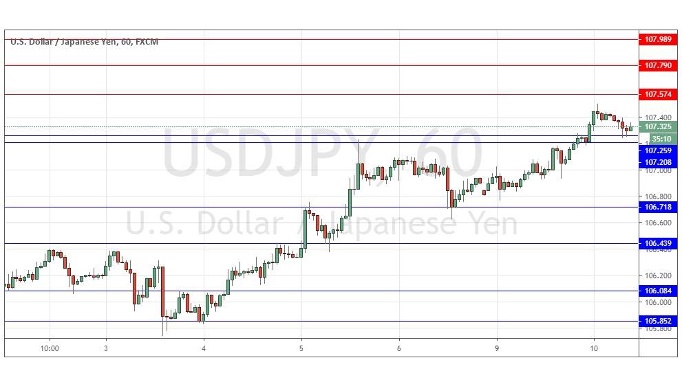 Yesterday’s signals were not triggered, as there was no bearish action at either 107.21 or 107.26.
