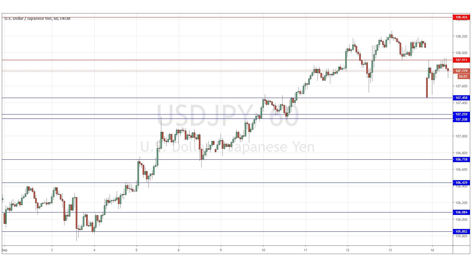 Last Thursday’s signals produced a profitable long trade from the bullish bounce at 107.57 and a losing short trade from the bearish rejection of 108.18.