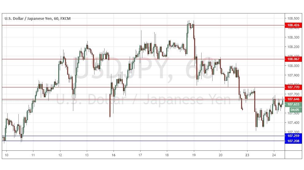 I wrote yesterday that the technical picture was more bearish as we are getting clear steps down. I thought that if the support level at 107.46 held into the New York session and we started to get a bullish turn, then it would be a sign that a long trade from that level had become a good idea. I was be inclined to be more bearish on this pair if the price can get established below 107.21 later on. This wasn’t a bad call as it was enough to keep out of trouble and I judged the important levels correctly, although it wasn’t enough to produce a winning trade.