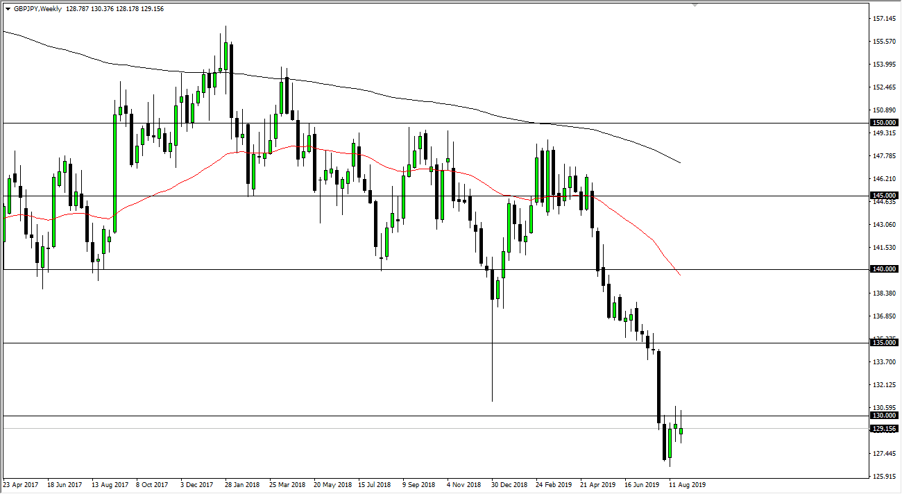 The British pound has been all over the place as one would expect, as the Brexit continues to cause major issues. Hooking of the chart though, it’s obvious that the ¥130 level that we have a lot of selling pressure there. The market forming a bit of a shooting star, and I think it’s only a matter of time before we reach down to the ¥126 level. The alternate scenario of course is that we break above the top of the shooting star from the previous week, which could give the market reaching towards the ¥134 level. All things being equal, it’s very likely that the market will continue to be negative though, not only the Brexit but also the risk appetite warrants that move.