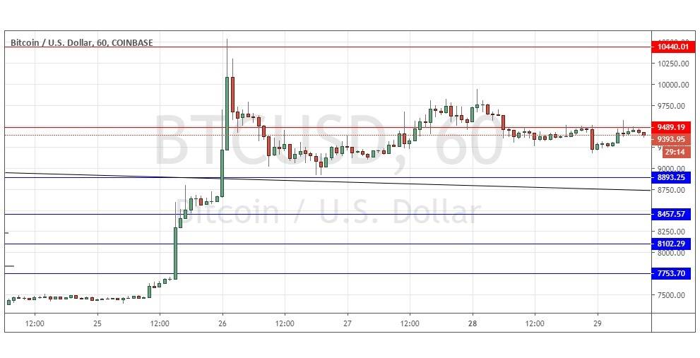 • Go short after a bearish price action reversal on the H1 time frame following the next touch of $9,489 or $10,440.