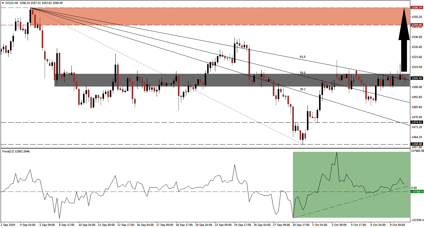 The Force Index, a next generation technical indicator, is pointing towards the build-up in bullish momentum which is expected to pressure price action into a breakout. The reversal of the breakdown below the short-term support zone in gold has allowed the Force Index to move above its horizontal resistance level, turning it into support. Its ascending support level is additionally assisting the advance in this technical indicator which is trading in positive conditions; this is marked by the green rectangle. Developments out of today’s high level US-China trade talks are expected to impact price action in gold. You can learn more about the Fibonacci Retracement Fan, the Force Index and the Support Zone here.