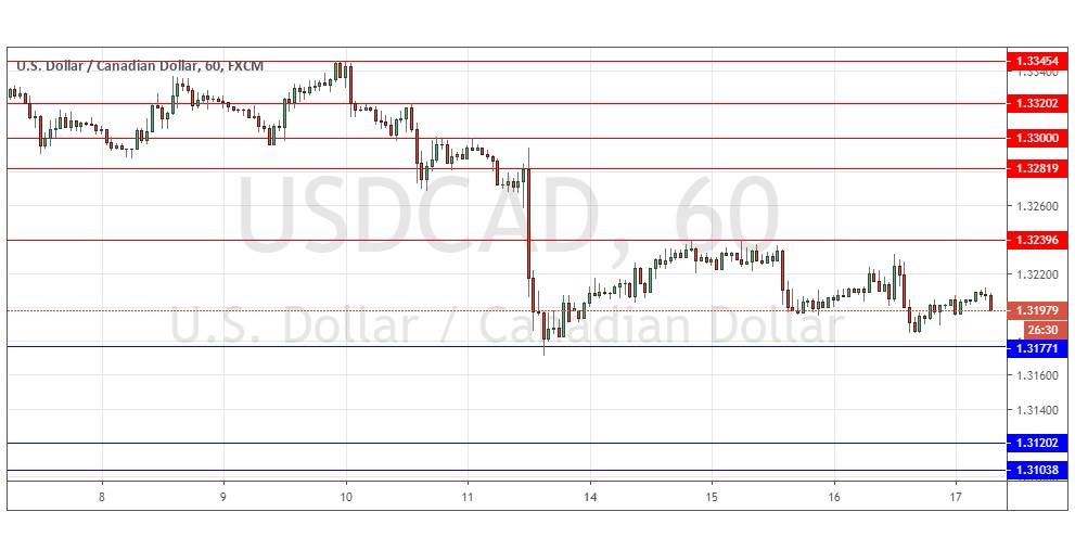 A long trade there could be interesting if there is a convincing short-term bullish reversal, but a short from any of the resistance levels above also looks good. Conversely, a sustained break below 1.3177 could trigger a further downwards thrust, so I would be prepared to take a bearish bias later today if we get two consecutive hourly closes below that level, to at least 1.3120.USDCADThere is nothing of high importance due today concerning the CAD. Regarding the USD, there will be a release of Philly Fed Manufacturing Index data at 1:30pm London time and Crude Oil Inventories at 4pm.