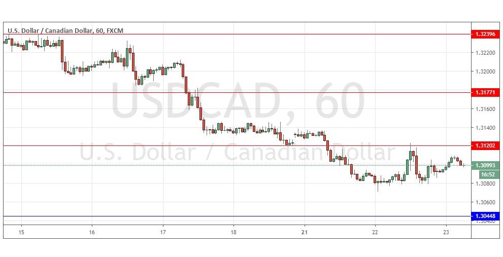 Support and resistance levels are quite clearly defined here, although we have a weak but real long-term bearish trend. The issue for bears is that as the price gets closer to the key support level of 1.3045 and the round number at 1.3000, the more likely we are to see a major bullish reversal. For these reasons, I will take a bearish bias today if we get a bearish reversal at 1.3120, or a bullish bias if we get a bullish reversal at 1.3045.USDCADThere is nothing of high importance due today concerning either the CAD or the USD.