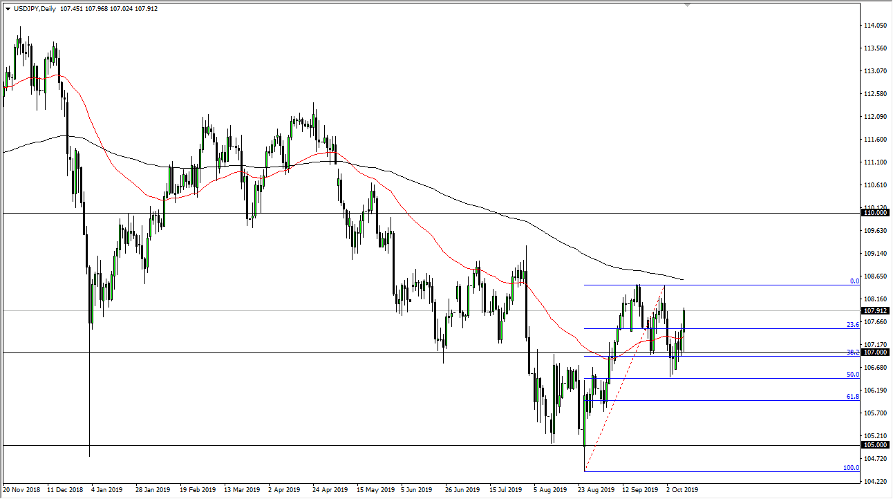The US dollar has initially fallen during the trading session on Thursday as it was suggested on Twitter that the Chinese were going to be leaving the trade talks a day early. As that did not pan out to be true, traders came back in and started buying as the “risk on” trade came back into the forefront. By doing so, the US dollar rallied against the Japanese yen which is considered to be one of the safest currencies out there. We broke above the 50 day EMA and even closed towards the top of the candle stick. Typically, this will mean a bit of follow-through.