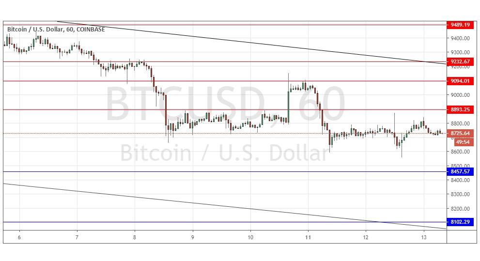 Yesterday’s signals produced a short trade from the bearish rejection of the resistance level identified at $8,803 which is still open and in play.