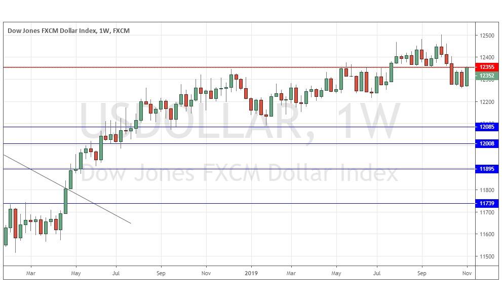 The weekly price chart below shows last week printed a slightly larger than usual bullish engulfing candlestick, closing just below the resistance level at 12355, and closing very close to the top of its price range. These are mixed signs, as although there is short-term bullish momentum, the price is below its level from 3 months ago, but above its level from 6 months ago, and has yet to clear the pivotal resistance level. This suggests that next week’s action is less predictable but would be more bullish if the price can get established above 12355.