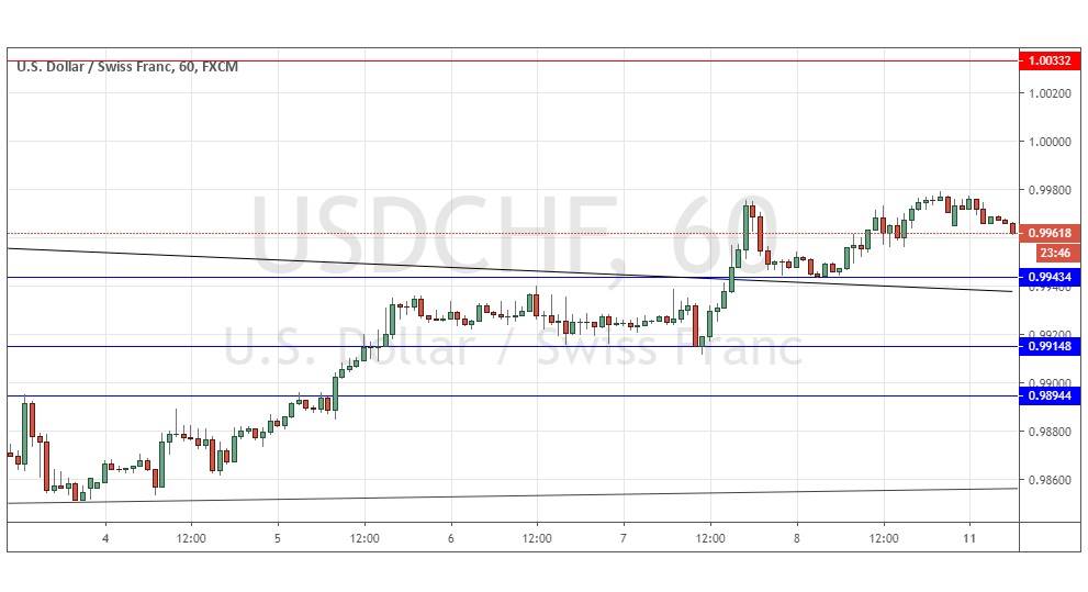 I wrote yesterday that I was prepared to take a bearish bias following a reversal at 0.9945 or a bullish bias if we get two consecutive hourly closes above that price during the New York session today. We got those 2 closes, which should have produced a profitable long trade entry which made at least a few pips, so this was a good call.