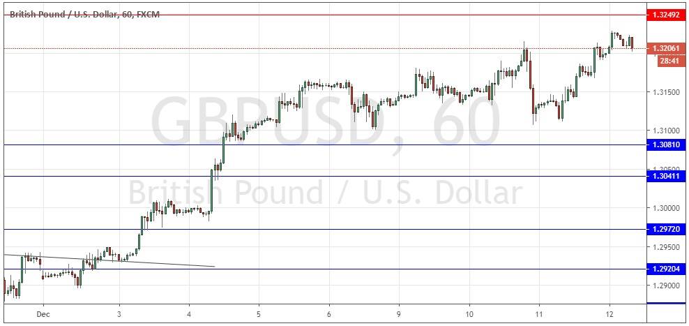 I wrote yesterday that it was really impossible to forecast price movement in this pair now as everything would depend upon the results of further opinion polls which may be released plus rumours. The polls have continued to mostly show a Conservative majority and the betting markets continue to show a 75% probability of a Conservative majority happening when results are counted at 10pm tonight London time.