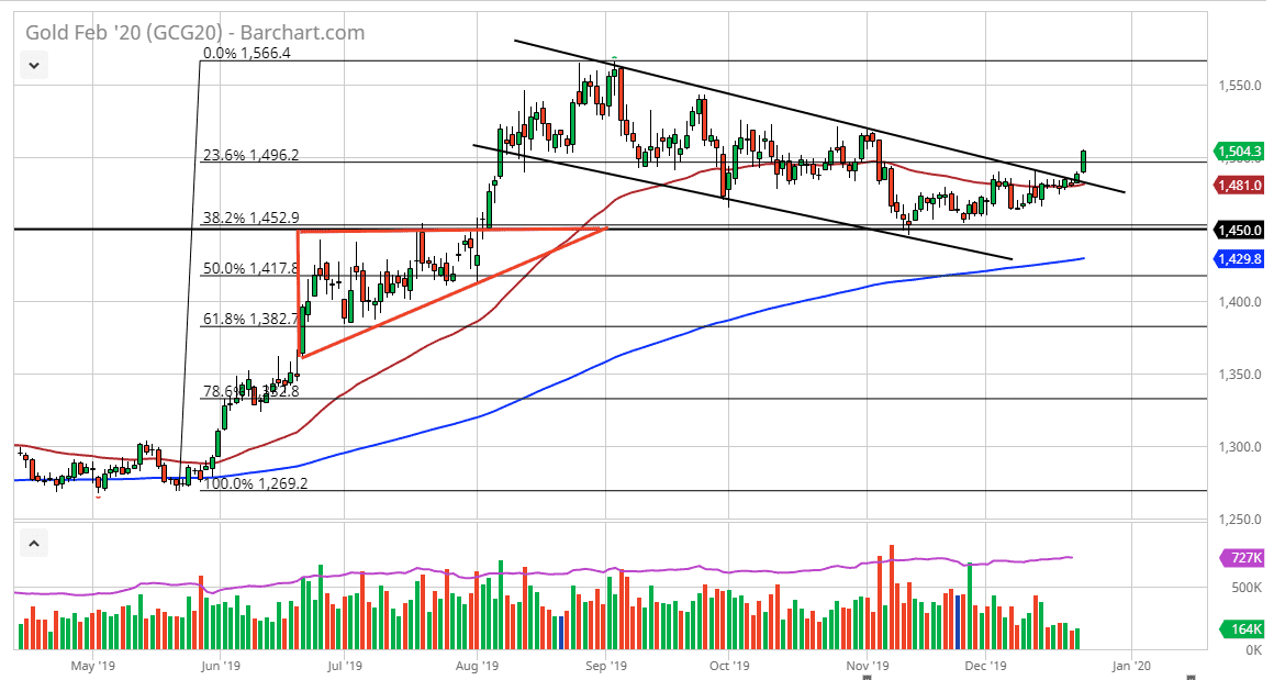 Gold markets have exploded to the upside during the trading session on Tuesday as traders continue to take advantage of the massive breakout. We are clearly above the $1500 level now so it’s likely that we will see a significant amount of buying pressure come into play. That being the case, this is a market that will continue to prefer the upside and go looking towards the $1520 level. That’s an area that features structural resistance, as it was a high from almost 2 months ago where we slaved into the down trending channel. At this point, we have broken out and it’s likely that gold will continue to attract a lot of attention. Nonetheless, I believe that there are some reasons why gold is getting a bit of a pickup.