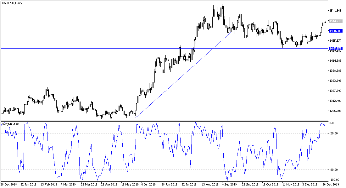For the fourth consecutive day, gold prices stabilized around and above the $1500 psychological resistance level, with gains that extended to $1515, the highest level in nearly two months. Gains were supported by the decline of the US dollar, and renewed investor fears about the future of the trade agreement between the United States and China, as well as Brexit. Gold is one of the most important safe havens for investors in times of uncertainty, and accordingly, it may receive the 2020 transactions by settling on its current gains. At the same time, if the official date for the signing of the commercial deal between the two largest economies in the world was announced, and its details were satisfactory to the markets, the price of gold could quickly collapse.