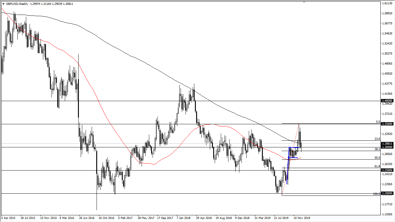 The Euro has rallied rather significantly during the trading session on Friday, and that ended up forming a very bullish candlestick for the week. We are pressing the 1.12 handle, so on a move above the 1.1250 level I anticipate that the market will go looking towards 1.14 handle. Otherwise, I fully anticipate that we will get a little bit of the selloff and perhaps reach down towards the 1.11 handle which is essentially “fair value” in the market. Keep in mind that this week will be very thin as far as volume is concerned, so I wouldn’t read too much into the candlesticks quite yet.