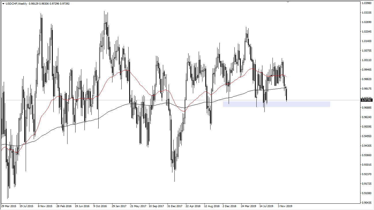 The US dollar has gotten hit against the Swiss franc, breaking through the back of a hammer from the previous week. That obviously a very bullish sign and now we are threatening the 0.79 handle. If we break down below there on a daily close, then I anticipate that we will go down to the 0.96 level, followed possibly by the 0.95 level. However, rallies at this point could occur, but I would be very suspicious of them until we break above the 0.9850 level.