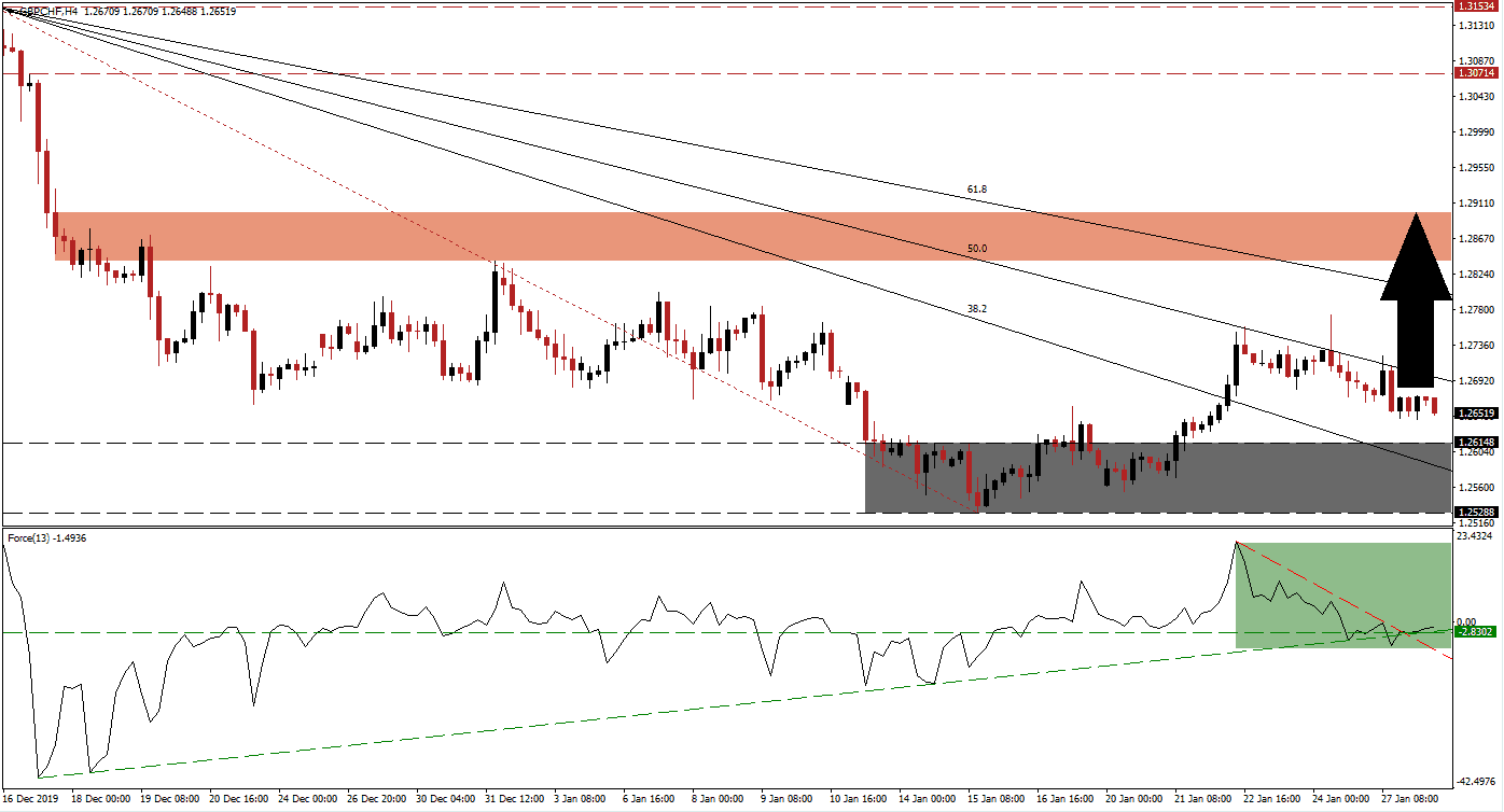 After this currency pair recorded a higher high and pushed through its descending 50.0 Fibonacci Retracement Fan Resistance Level, a reversal emerged. This was solely due to safe-haven demand for the Swiss Franc as the deadly coronavirus is spreading. South Korea reported that the economic impact shifted from tourism to technology, increasing the rotation from risk-assets into safe-havens. The GBP/CHF maintained the breakout above its support zone, and a resumption of the uptrend is favored.