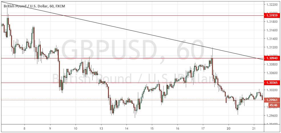 I think this was a good call as although the price at the time of writing is just slightly higher than it was 24 hours ago, there is bearish momentum over the short term and it looks clear that there are likely to be lower prices today after the price has struggled to rise much beyond 1.3000.