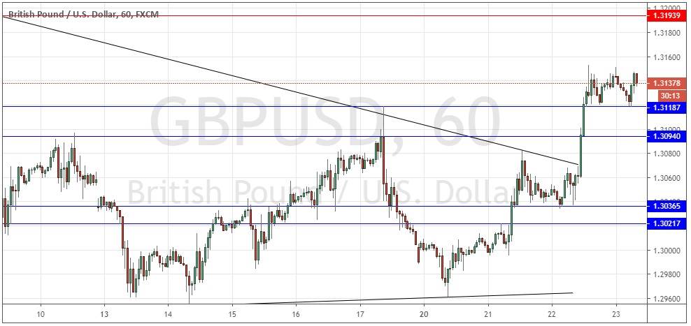 I wrote yesterday that the technical picture has become more bullish with new support at 1.3036 as a buying level. However, although I said I preferred a long trade from 1.3037 to any short trade, I was also cautious about trading long before the price broke above 1.3100.